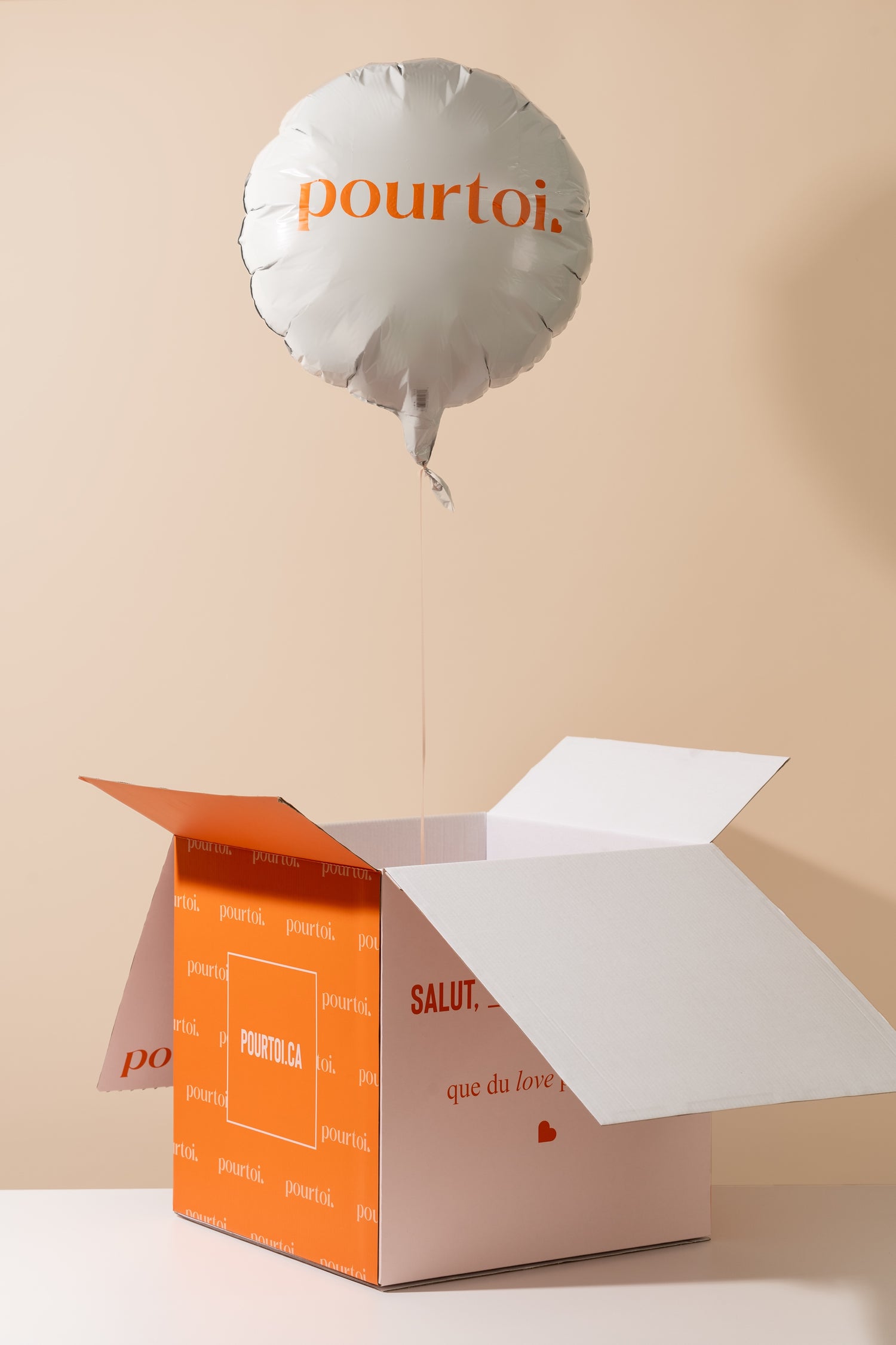 Attends minute ... est-ce que c'est une boîte complètement personnalisée avec un ballon qui sort de celle-ci ?! Oh que OUI! Offrez un cadeau tout simplement capotant!