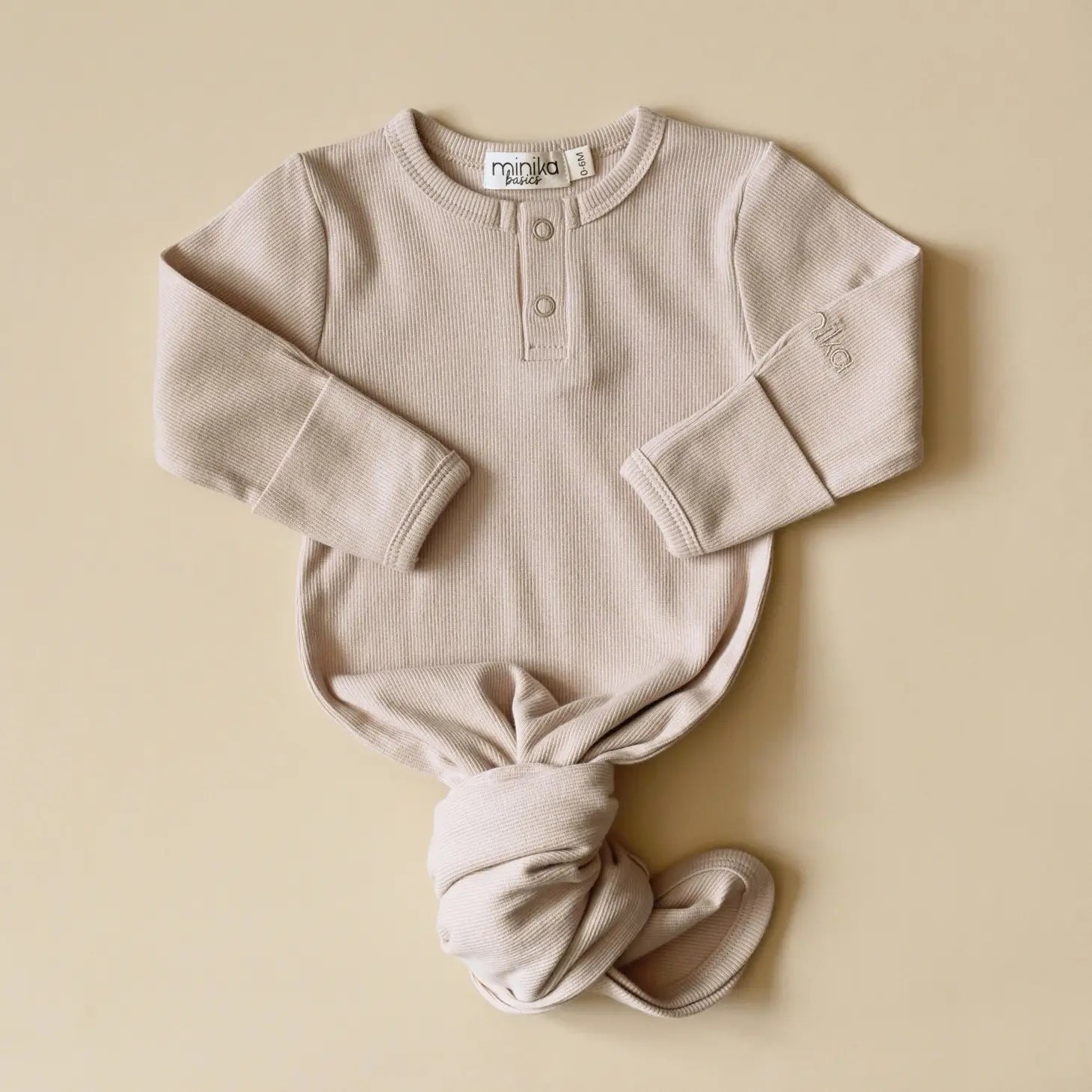 Dormeuse côtelée à nœud. 0-6 mois. 95 % coton biologique, 5 % élasthanne.