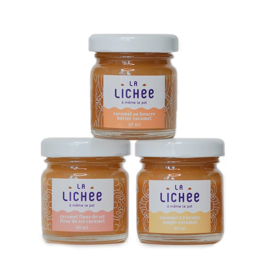 Les caramels classiques en format découverte ! Il s'agit de 3 unités de caramel au format de 50 g. Cet emballage comprend du caramel au beurre, du caramel à la fleur de sel et du caramel à l'érable. Parfait pour les paniers-cadeaux, les cadeaux d'hôtesse ou tout simplement à glisser dans le sac !